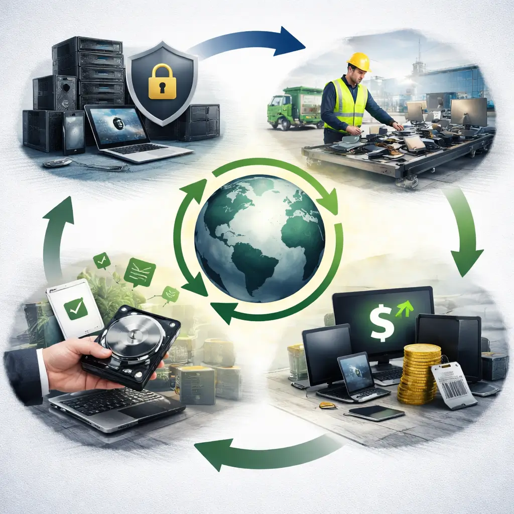 A ECOTRADE oferece um serviço completo de ITAD (Gerenciamento do Ciclo de Vida de Ativos de TI), garantindo que seus equipamentos sejam gerenciados de forma eficiente, segura e sustentável, desde o momento em que se tornam obsoletos até o descarte final.