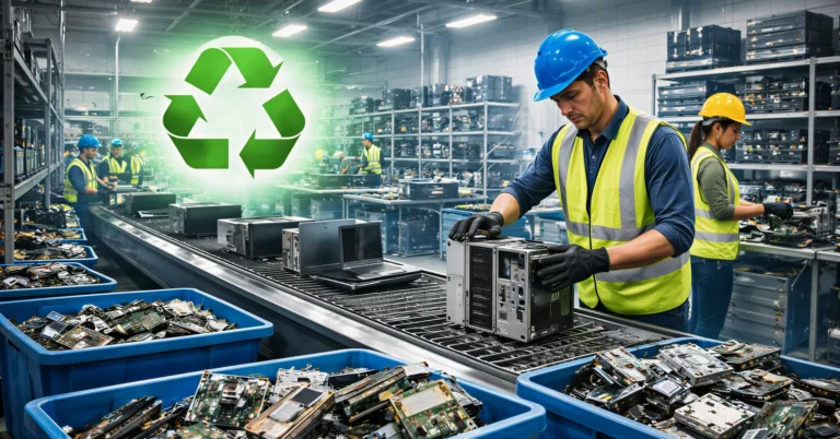 A ECOTRADE oferece serviços completos de reciclagem de eletrônicos, garantindo a destinação correta e ambientalmente responsável dos seus equipamentos de TI em desuso.